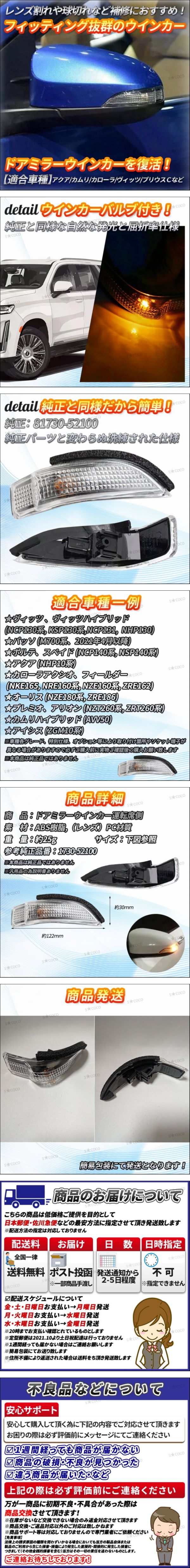 | ドアミラー ウインカーレンズ トヨタ クリア サイドミラー 運転席 右側 交換タイプ ターンシグナルランプ 純正交換 ヴィッツ アクア ② | ||