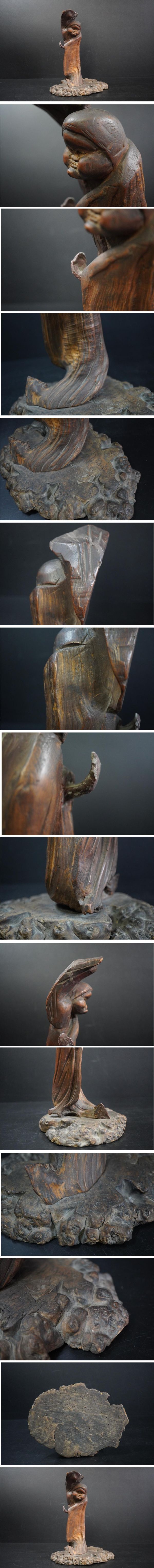 ご覧いただきありがとうございます。 時代品 木彫 舞お多福 (31.5cm) 玉杢瘤木台付 置物です。 擦れキズ、経年のシミ、汚れ等ありますが、総じて状態は良好です。