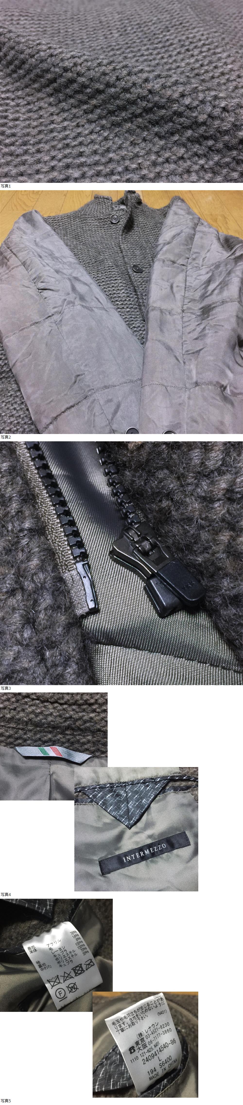 | 【ブランド】 INTERMEZZO インターメッツォ 平日の緊張から身体と精神を開放・緩和するための週末着。 イタリアンスタイルをベースとした、都会的で洗練されたトータルスタイルを提案する大人のカジュアルブランド。 【デザイン・モデル】 ウール混ニット 袖切替 中綿 コンバーチブル ジャケット 【生産】 ㈱レナウン 【詳細・コメント】 INTERMEZZO インターメッツォ ドライビング ジャケットになります。雰囲気あるざっくり編みのウール混ニット生地をメインに使用したジャケット。袖部分を織り地で切り替えることで、他とは一味違った仕上がりに。フロントはボタン・ジップの開閉具合によってテーラードとスタンドカラーの着こなしができるコンバーチブルデザイン。デザイン性はもちろん機能性にも拘った一着で、さっと羽織るだけでこなれた雰囲気を演出して頂けます。 正規品です。 【サイズ】 表記: L (チェスト96~104 身長175~185) ※実寸を参考にして下さい。 平置実寸:身幅55㎝ 着丈72cm 肩幅48㎝ 袖丈62㎝ ※多少の誤差はご了承ください。 【カラー・パターン】 グレージュ系(ブラウン系) ※ご覧になられるモニターや、デジカメの撮影具合によって色味が異なる場合がございますのであらかじめご了承ください。 【品質】 表地:アクリル78% 毛14% レーヨン2% 袖:キュプラ100% 裏地:ポリエステル100% 袖中綿:ポリエステル70% キュプラ30% 【コンディション】 USED 中古品 です。右袖の色褪せ、ニット地の毛羽立ちなど使用感ございますが、目立ったダメージは無くまだまだ着ていただけます!※写真参考に判断して下さい。ユーズドアイテムにご理解ある方のみご入札お願い致します 。 | |||