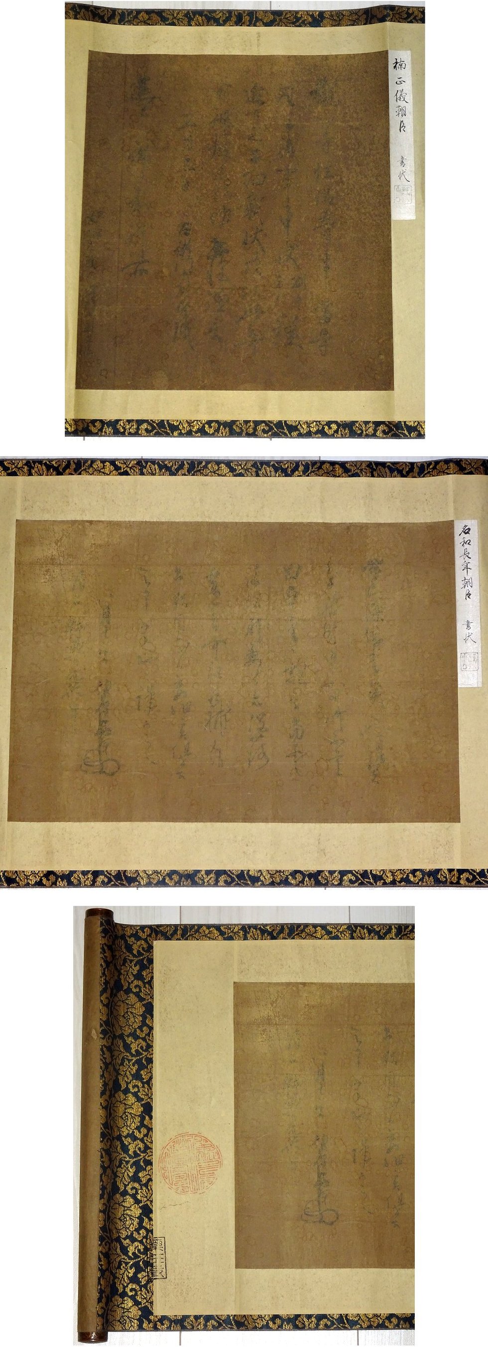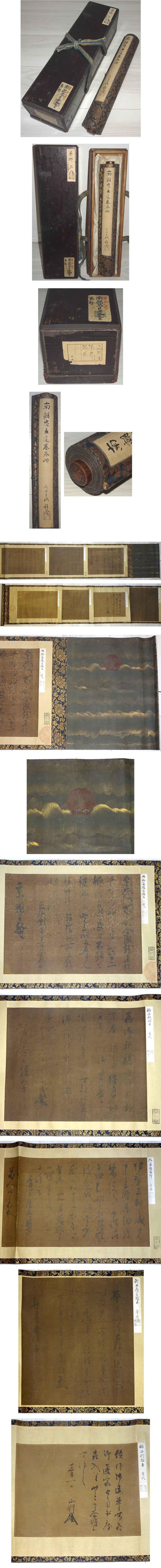 紙本 金軸 真筆保証(真作) 金襴表装 ウブ幅 漆塗箱入 巻物寸法36×301 少し時代等あり 幅自体しっかりしています ※古筆の極札あり ※所蔵印あり よろしくお願い致します