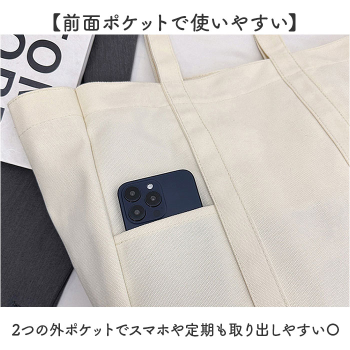| 商品説明 | ・・【毎日使える大容量】 ・軽くて収納力抜群、通勤からお出かけまで活躍するトートバッグ。 ・【たっぷり収納で便利】 ・大きめサイズで荷物がたっぷり入る◎ ・【内側ポケットで整頓】 ・オープンボタンとファスナーポケット付きで貴重品管理も安心♪ ・【前面ポケットで使いやすい】 ・2つの外ポケットでスマホや定期も取り出しやすい〇 ・【キャンバス素材で軽やか】 ・軽量生地で肩への負担が少なく毎日快適に使えるバッグ! |
