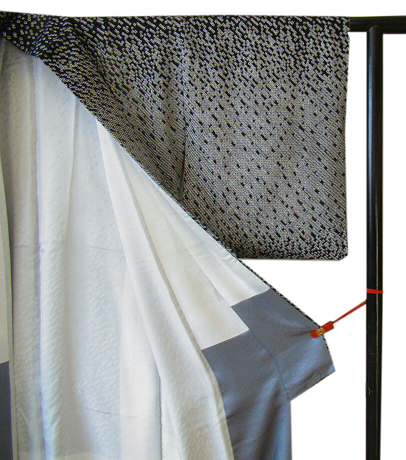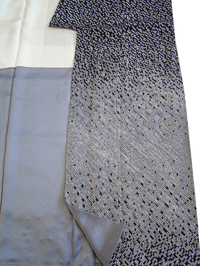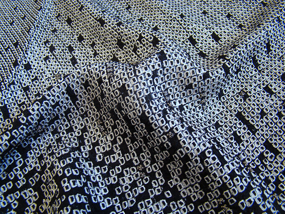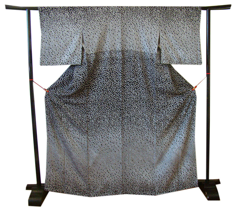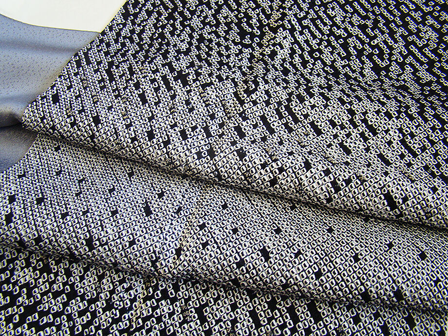 | 商品説明 | こちらのお品は「袷」ですので10月から5月までお召頂ければと思います。 しなやかで柔らかなぽってりとした手触りの着心地良い重めの極上ちりめん地の生地、 黒色地に白色のしっかりとした鹿の子総絞り入りに銀色の飾り付き、 八掛は銀鼠色(正絹)、身幅細め、幅広い年代の方にお召頂けます。 |