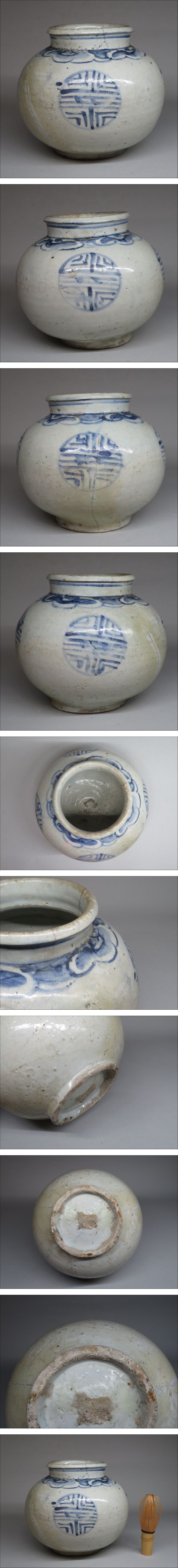 | 【李朝/高麗 特集出品】李朝 染付寿紋文壷 朝鮮古陶磁器/李朝時代 朝鮮美術 | ||||