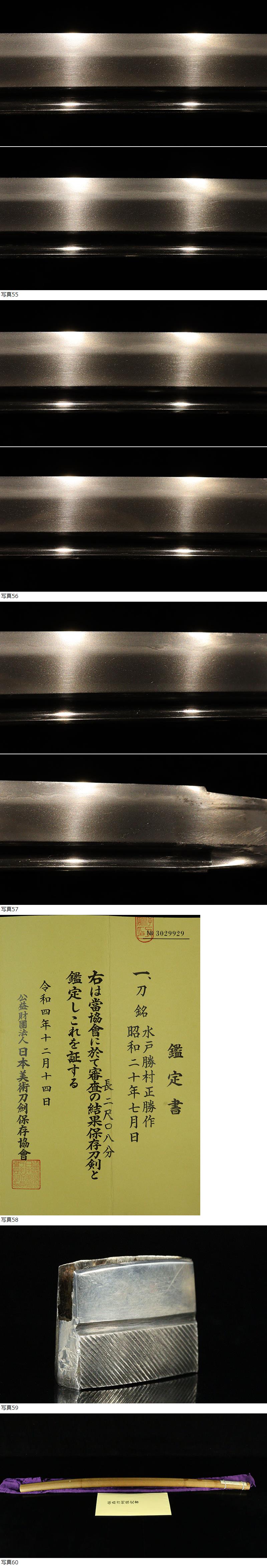 | ■刀剣のサイズ表示について 元幅・・・焼出し付近を測定しております 先幅・・・横手筋付近を測定しております 元重ね・・・焼出し付近の厚みを測定しております 先重ね・・・横手付近の厚みを測定しております (多少の誤差はご容赦ねがいます) ■銃砲類のサイズ表示について 全長・・・銃身先から台木尻までを測定しております 銃身・・・台木を除いて金属部分を測定しております (多少の誤差はご容赦ねがいます) 当社が出品する刀剣類は、入手した時の状態のまま出品しております。 ハバキ、小道具等も当社で調整したり付け替えたりはしておりませんので、合わせではないかというクレームは一切受け付けません。 刀身の疵も隠すことなく載せておりますので写真をよくご覧になってご入札ください。 疵に関して、説明がない等のクレームは一切受け付けません。 写真ではわかりにくい部分は質問欄やお電話でお問い合わせください。 但し、説明欄に表記のない刃切れに関してのみ返品やご相談に応じます。 ※ご落札しご購入されお手元に届いてから20日以内に 登録証に記載されている各都道府県の教育委員会にご連絡し 登録証の所有者変更を必ず行ってください | |||