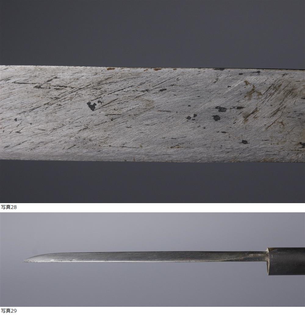 26022005* * * 商品詳細 * * * ここでしか出逢うことのできない唯一の美をご紹介させて頂きます。 中に槍が隠された珍しい仕込み煙管のご紹介です。 一見立派な喧嘩煙管ですがその中には槍が仕込まれています。 刃渡りは短くも鈍く輝く刀身は刀剣ならではの鋭さと緊張感を感じさせます。 細密な彫金も施されており、迫力のある虎が見事に表現されており、 羅宇部分は鮫皮と洒落た造形も魅力的です。 造り手の素晴らしい技も堪能できる時代の逸品をこの機会に是非お求めください。 ■サイズ/全長31㎝ 刃渡11.4㎝ 総重量286g ■状態/経年による傷み、スレ、キズ、サビ、割れ、刃と切先に潰れがございます。 ※写真にてご確認、ご了承の上ご入札下さい。 * * * 支払詳細 * * * !かんたん決済 * * * 発送詳細 * * * 入金確認後3営業日以内に発送致します。 ※直接引き取りも可能です。 60~160サイズにつきましては 佐川急便、ゆうパックのどちらかで発送いたします。 ゆうパック発送の場合、弊社の発送日から追跡サービスに問合せ番号が反映されるまで 約1日ほどお時間がかかりますのでご了承下さい。 * * * 注意事項 * * * 運送中の破損があった場合は速やかに当社までご連絡下さい。 保険を利用するのに受取連絡後に運送会社による現場での破損状況確認が必要となります。 勝手に返送されますと保険の適用外となりますのでご注意ください。 * * * * * * お問い合わせ:082-236-8669 |