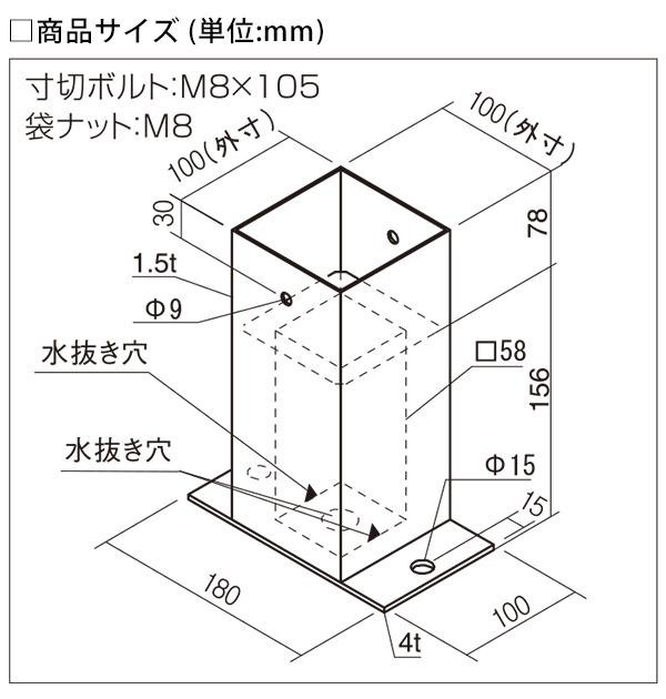 | ステンレス柱受は、腐食に強いステンレス素材を採用し、柱そのものの腐敗を防止する水抜き穴が施されています。 ※北海道・沖縄・離島は別途送料がかかります。 |