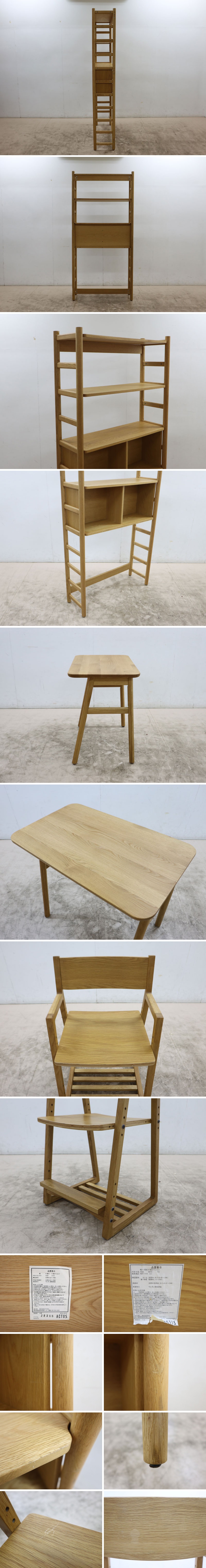 【仕様】 ●シェルフ サイズ:約 W90×D30×H189.5cm ※実寸の為、多少の誤差はご了承下さい。 素材:オーク材 ●デスク サイズ:約 W81×D49.5×H71cm ※実寸の為、多少の誤差はご了承下さい。 素材:オーク材 ●チェア サイズ:約 W46×D45×H77.5・SH45.8 AH60.4cm ※実寸の為、多少の誤差はご了承下さい。 素材:ホワイトオーク材、バーチ材 |