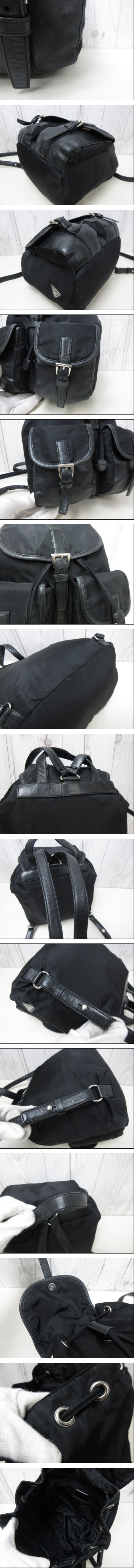 美品 PRADA プラダ テスート カード付 ナイロンリュック リュックサック バッグ B6821 ナイロン×ナッパレザー 黒 98279Y