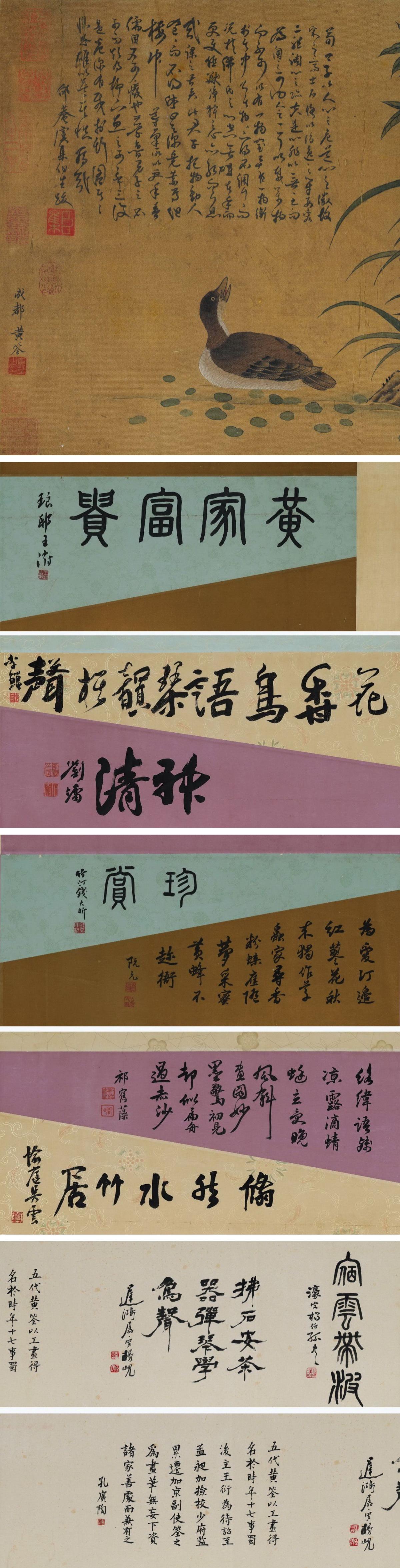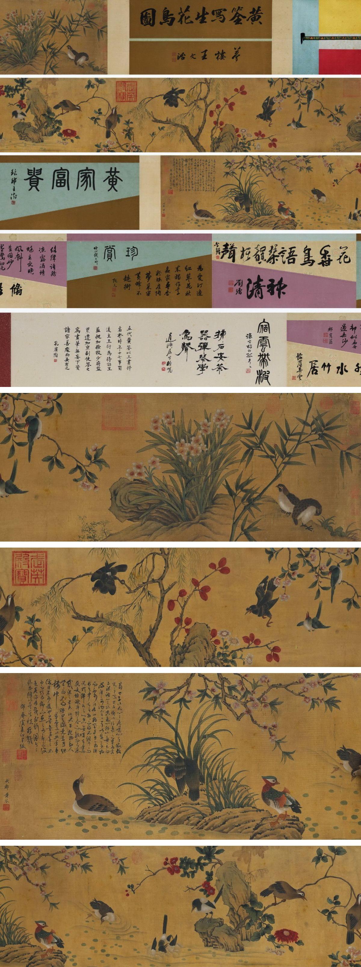 【雲錦】某蒐集家買入「黄せん寫」中国古代画家 絹本【花鳥圖・絵巻手巻】肉筆保証 巻き物 中国字畫 中国書画 中国書畫8L19-19YL