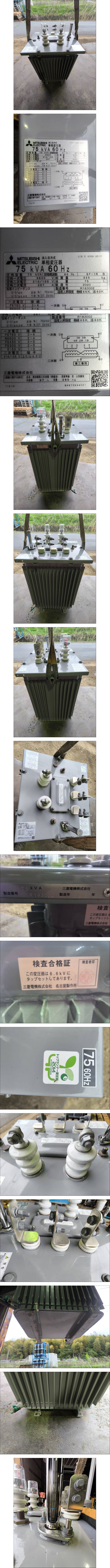 えy4149◆三菱 MITSUBISHI 単相変圧器 75kVA 60HZ SF-1R トップランナー 油入自冷式 2020年製 中古 | |||