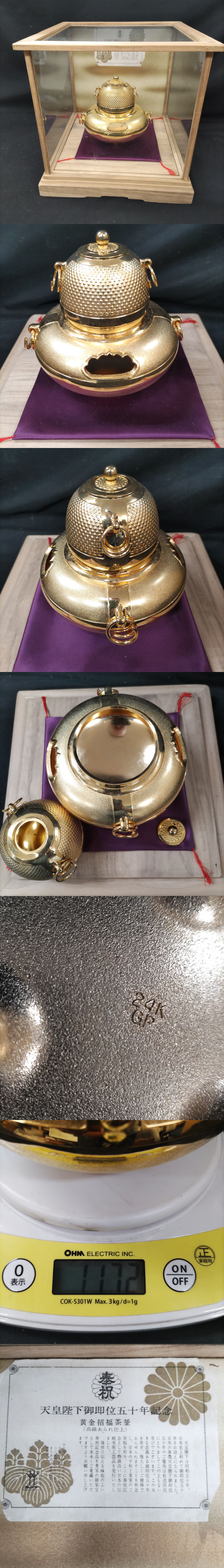 | ※必ず最後までお読みください。 Please be sure to read to the end. 一定要到最后※ | 商品概要 | 数あるオークションの中からこちらの商品をご覧頂きまして誠にありがとうございます! ※商品説明と注意事項を必ず全てお読み頂いた後にご入札下さい※ 引き続き 安心できる気持ちの良いお取引を心掛けてまいりますのでどうぞ 宜しくお願い致します! 色んなジャンルの商品を多数出品しておりますので、こちらをクリックしてご覧ください!! 東京都公安委員会 古物商許可 第307781505147号 ◎奉祝◎天皇陛下御即位五十年記念 黄金祝福茶釜 24KGP 高級あられ仕上 日本伝統美術工芸品 即発送 ※最下部にも写真掲載中なので必ずご覧下さい。 【商品概要】 天皇陛下御即位五十年記念 黄金祝福茶釜になります。 24金メッキのスプーンにスワロフスキーのクリスタルが施されており、高級感があります。 お探しの方、是非この機会にいかがでしょう(^_-)-☆♪ 外形寸法:高さ 約14cm/径 約15cm 重量:1172g 【状 態】 写真をよくご確認お願い致します。外装ランク:(N) 【詳細・備考】 写真に写っているものが全てになります。 また、タイトルや本文と写真が異なる場合は写真を正とします。 保管品なので状態判断には個人差があることを予めご了承の上 写真にてご確認ご判断をお願い致します。 譲り受けたお品で当方は専門店ではないので詳細の質問にはお答えできかねます。 また簡単な検品は行っていますが、譲り受けた商品のため欠品等見落としがある場合がございますので保証等はしかねます。 ※返品不可が入札条件となります。 ※中古現状とは動作未確認のジャンク品になります。 ※通電確認とは電源に繋げてONOFFの確認のみになります。 ※バッテリーや電池は消耗品なので経年劣化がある場合もあることをご了承お願い致します。 ※保管品に関しては未使用でも新品ではございませんので、保管期間による劣化等ある場合もございますので、新品をお求めの方はご入札をお控えください。 ※ジャンク品ではなくても中古品の性質上、配送途中や到着後に万が一不備不良が起きうる場合もございますがも保証はできかねますので、返金返品不可をご了承の上ご入札お願い致します。 ※未開封品に関しては中の状態が不明な為、不具合等ございましたらメーカーとご相談お願い致します。保証対象外とさせて頂きますのでこちらでは対応いたしません。 尚、実際の色とパソコンや携帯の画面を通じた色彩は異なる場合もございますのでお気をつけ下さい。 =外観ランク表記= (N)長期保管/未使用品(新品ではございません) (S)数回程度使用の美品 (A)多少の傷、若干の使用感がありますが程度良好の美品 (B)一般的な使用感あります。 (C)汚れ、使用感を感じるがまだまだ使える品物 (D)汚れ、使用感等が見受けられる難有品 (E)ジャンク品 ※大体の目安としてお考え下さい。 新品に近いものをご希望の方や神経質な方のご入札はご遠慮下さい。 ご入札頂いた時点で本文説明文に了承を頂き、商品にご納得して頂いたと当方で判断させて頂きますので 【ノークレーム・ノーリターンがご入札の条件となります】 また、弊社のオークションでは いろんなジャンルで多数出品しておりますので是非ご覧ください(^_-)-〇 ![]() ▶入札の取り消しは受け付けておりません。 落札後の質問やキャンセルも受け付けておりません。 尚、営業時間が9-18時となっておりますのでオークション終了間際や質問内容によっては返答できない場合がございます。 ジャンク商品に関してはいかなる場合も返品返金の対応はできかねます。 落札後のサイズ違いやイメージ違い等のキャンセル、クレーム、返品等はお受けできませんので予めご了承ください。 ご入札の方につきまして、当方にて評価が著しく悪いと判断した場合は、トラブル防止の観点からご入札を取り消させていただく場合がございますので予めご了承ください。 新規IDの方や、いたずら入札と判断した場合、入札削除させていただく場合がございますので、新規の方は質問欄にて購入意思を示してからのご入札をお願い致します。 ※の障害等で入札が不適切に成立した場合は落札された場合でも削除対象になりますことを予めご了承お願い致します。 取り置きは可能ですが物や金額によってはすぐに決済をお願いする場合がございます。 当方大量の商品を管理している為、複数落札の同梱ご希望の方は、「まとめて取引」の依頼を必ず行ってください。 ◆連絡方法◆ ▶当方連絡事項は全て取引ナビを使用しております。 ご連絡先、ご要望等は必ず「取引ナビ」にご入力お願い致します。※ご入札前の場合はdiamonds100ct@yahoo.co.jpまでお願い致します。 ⇩⇩下記の注意事項を必ずお読み下さい。⇩⇩ |