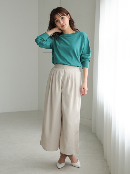 アルガンオイル加工をあしらったなめらかな風合いが特徴的なクルーネックニットプルオーバー。