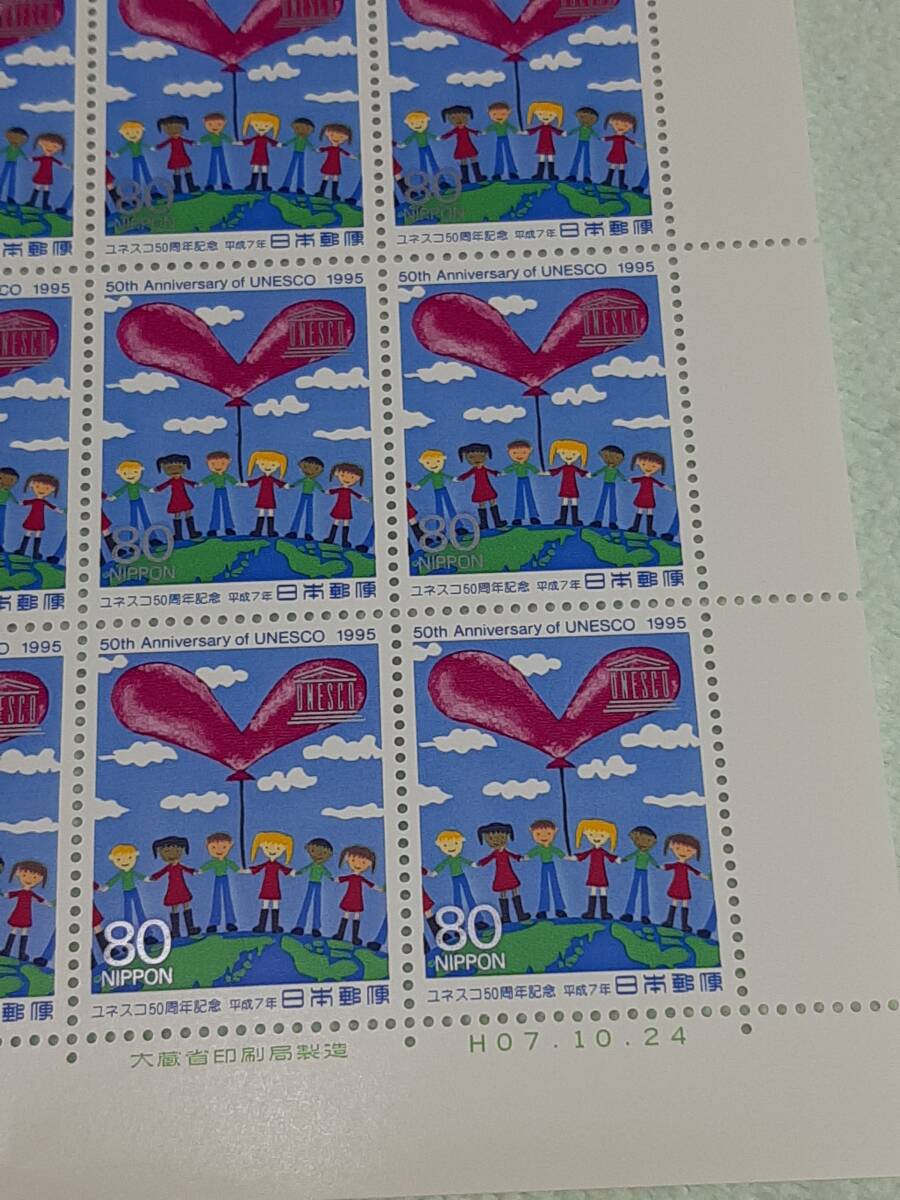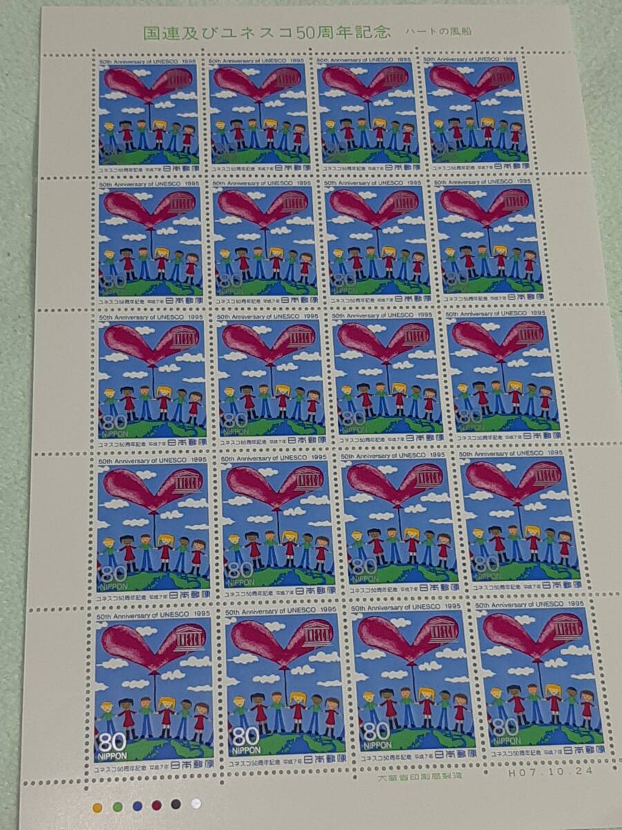 国連及びユネスコ50周年記念 ハートの風船 H7 切手シート1枚