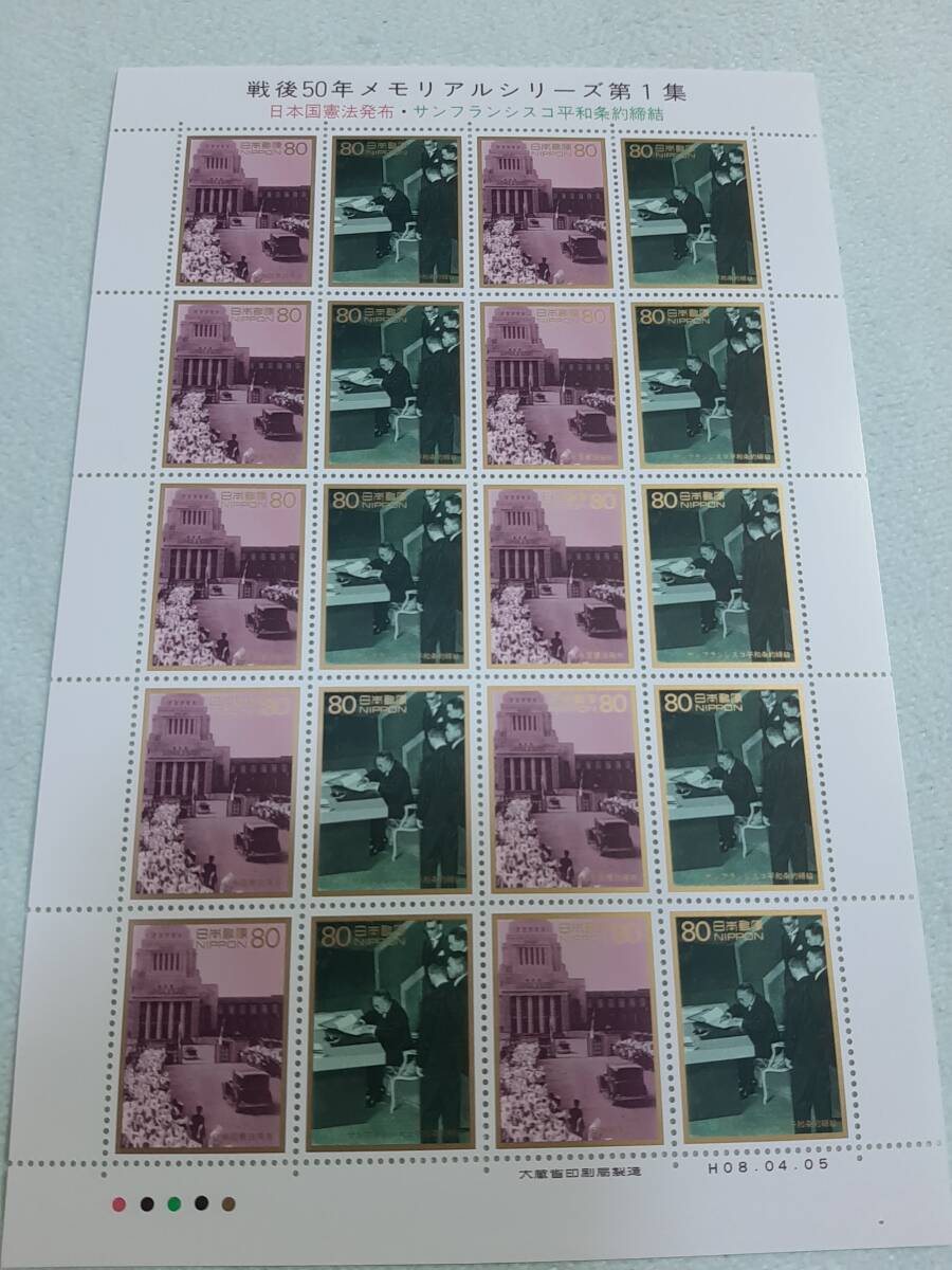 戦後50年メモリアルシリーズ 第1集 日本国憲法発布・サンフランシスコ平和条約締結 H8 切手シート1枚