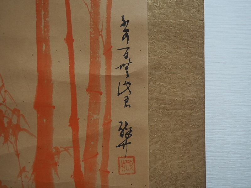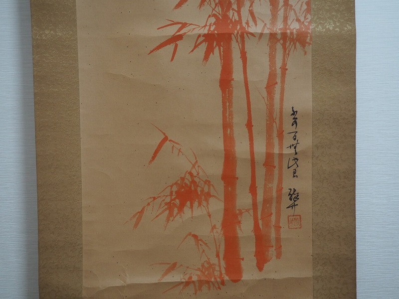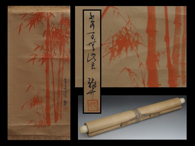| C0490 【模写】 安田酔竹 朱竹図 掛軸 ☆ 作家物 在銘 落款 当時物 掛け軸 巻物 壁掛 飾り物 床飾り インテリア コレクター放出品 旧家蔵出 | ||