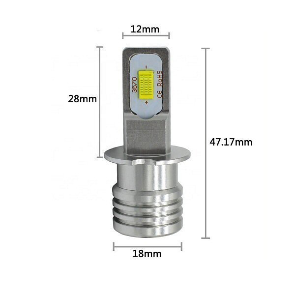 12v 24v 兼用 LED H3 フォグランプ 100w相当 無極性 プラチナ ホワイト 白色 ショートタイプ メール便送料無料 3