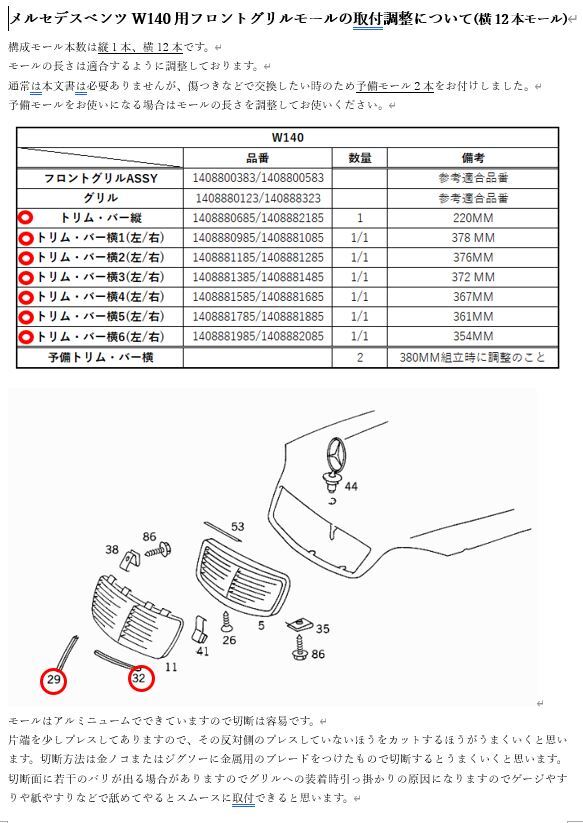 W140 S600の横6本モールタイプのラジエターグリルの交換用モールです。