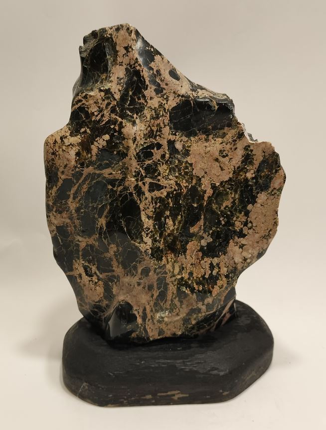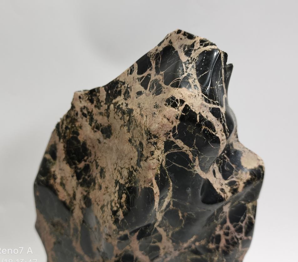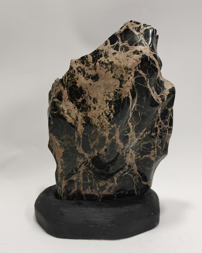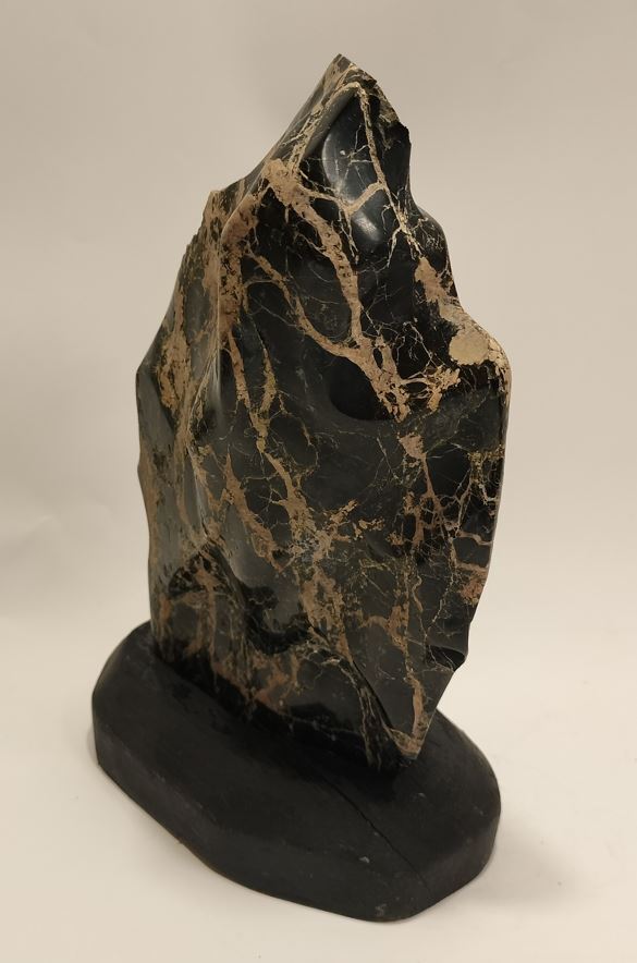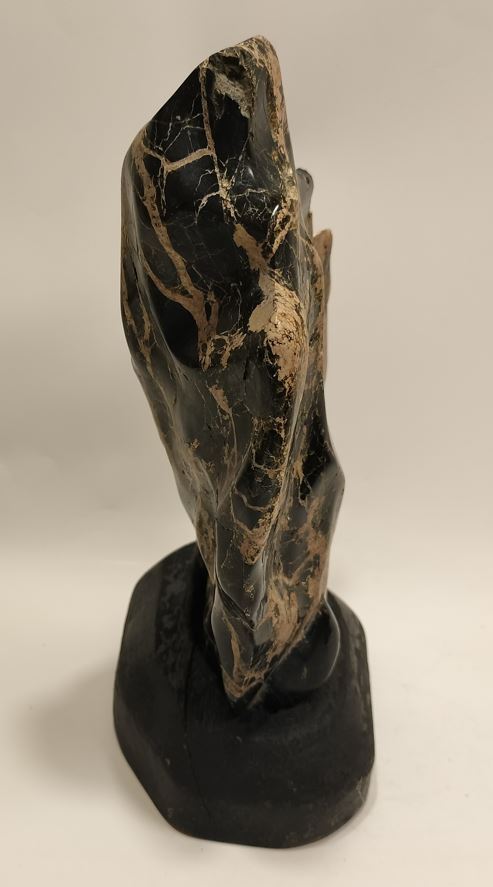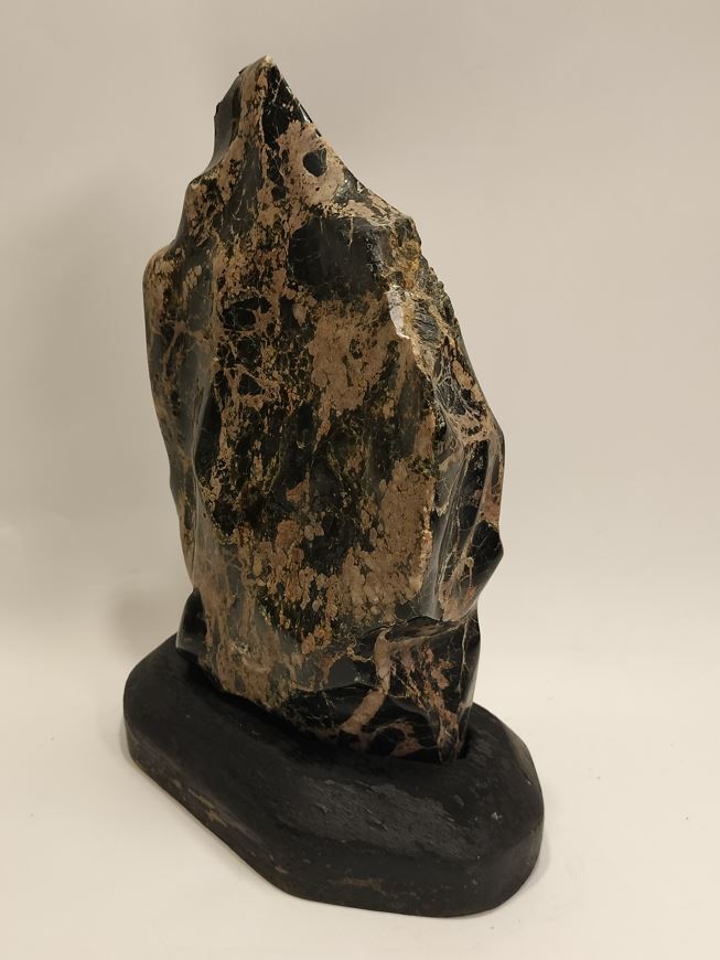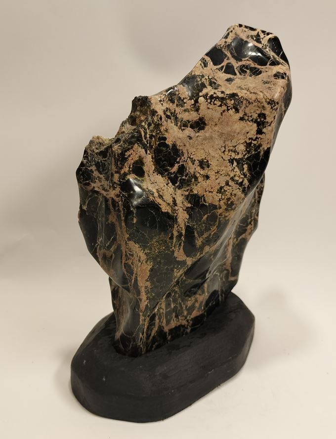 | ◆商品説明◆ | 御覧頂き有難う御座います。 天然鑑賞石 【サイズ】:石(約)横長15cm×奥行6cm×高さ22.5cm 【重さ】:2kg 台座(約):横長15cm×奥行9cm×高さ3.3cm 【重さ】:109g 全体高さ約:21.5cm 産地、名称不詳、硬度硬そうです。表面に磁石が付きます。 詳細な状態については、写真をご覧頂き、ご判断とご納得頂いた上でのご入札をお願い致します。 ご不明な点等御座いましたら、質問欄からお願い致します。 | |