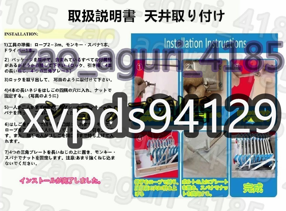 【折り畳み式はしご】折りたたみ式なので、使わないとき、簡単に収納できます。 屋根裏など狭い場所でも使えます。 こちらのはしごは、シンプルで、実用的で、伸縮自在で、小さなところでも使えるのに人気が高まっています。 日常的に使える場所は主にロフト、ガレージ、倉庫、ショップなどで使用されています。 スペースが限られているため、2階と下階をつなぐメインチャネルになります。 | 【高品質材質】ロフト壁はしごは高品質のアルミニウムマグネシウム合金素材でできており、表面は静電スプレー技術を採用しており、品質が安定しており、耐久性に優れ、耐腐食性と耐老化性があります。 一般に市販されている炭素鋼よりも耐久性の高い素材です。 両側はSベンド強化処理を採用しており、より重量、強度、安全性を持っています。 各ジョイントはリベットで接続されています。 厚みのあるリベットを使用することで、はしごの接続がよりしっかりと安全になります。 | 【床保護】折りたたみはしごを設計される際に、安定性は非常に大事なことでした。 はしごは安定性を高め、床に傷をつけないように 、2つのアンチスキッドゴムパッドを使うと考えられます。 滑り止めだけでなく、屋内の床を損傷から守ります。 |