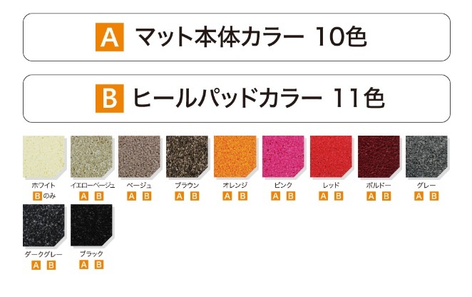 | ■マット本体カラー | イエローベージュ/ベージュ/ブラウン/オレンジ/ピンク/レッド/グレー/ダークグレー/ブラック/ボルドー |