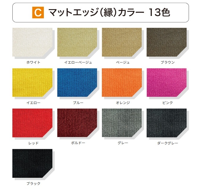 | ■エッジカラー | ホワイト/イエローベージュ/ベージュ/ブラウン/イエロー/ブルー/オレンジ/ピンク/レッド/グレー/ダークグレー/ブラック/ボルドー |