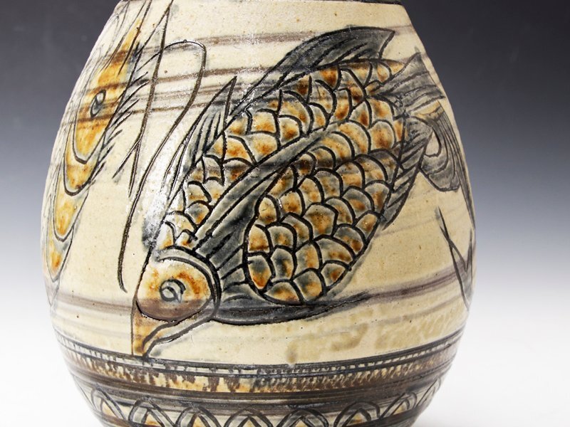 | 【古美味】大迫力!人間国宝 金城次郎 魚海老文大壷 茶道具 保証品 |