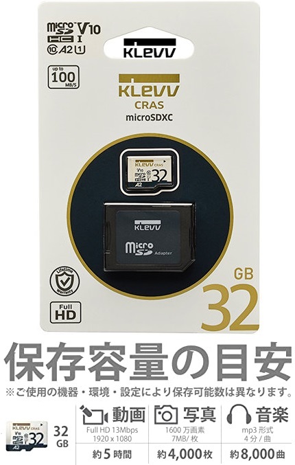 32GB microSDHCカード 32GB KLEVV マイクロsdメモリ 32G UHS-I U1 V10 A2 100MB/s SD変換アダプター付属 K032GUSD6U1-CA Nintendo Switch