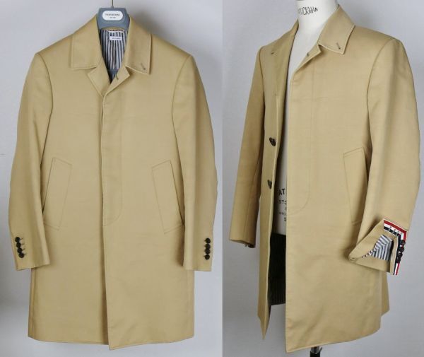THOM BROWNE CLASSIC BALLCOLLAR OVERCOAT size 0 トムブラウン クラシック バルカラー オーバー コート <色> 画像を参考にお願いします <素材> 表地 綿100% 裏地 レーヨン100% <サイズ> 0 <寸法> 肩幅44身幅47着丈86袖丈59(単位:㎝) <商品状態> 右前裾裏地にツレ、首回り・袖先内側・脇周り裏地を中心に薄汚れがございます。着用感はございますが比較的綺麗なお品です。 <備考> MOC001AWK181、日本製、ハンガーが付属します。 ■支払方法 YAHOOかんたん決済で落札価格+送料をお支払いください。 ■発送詳細 佐川急便、送料全国一律900円
