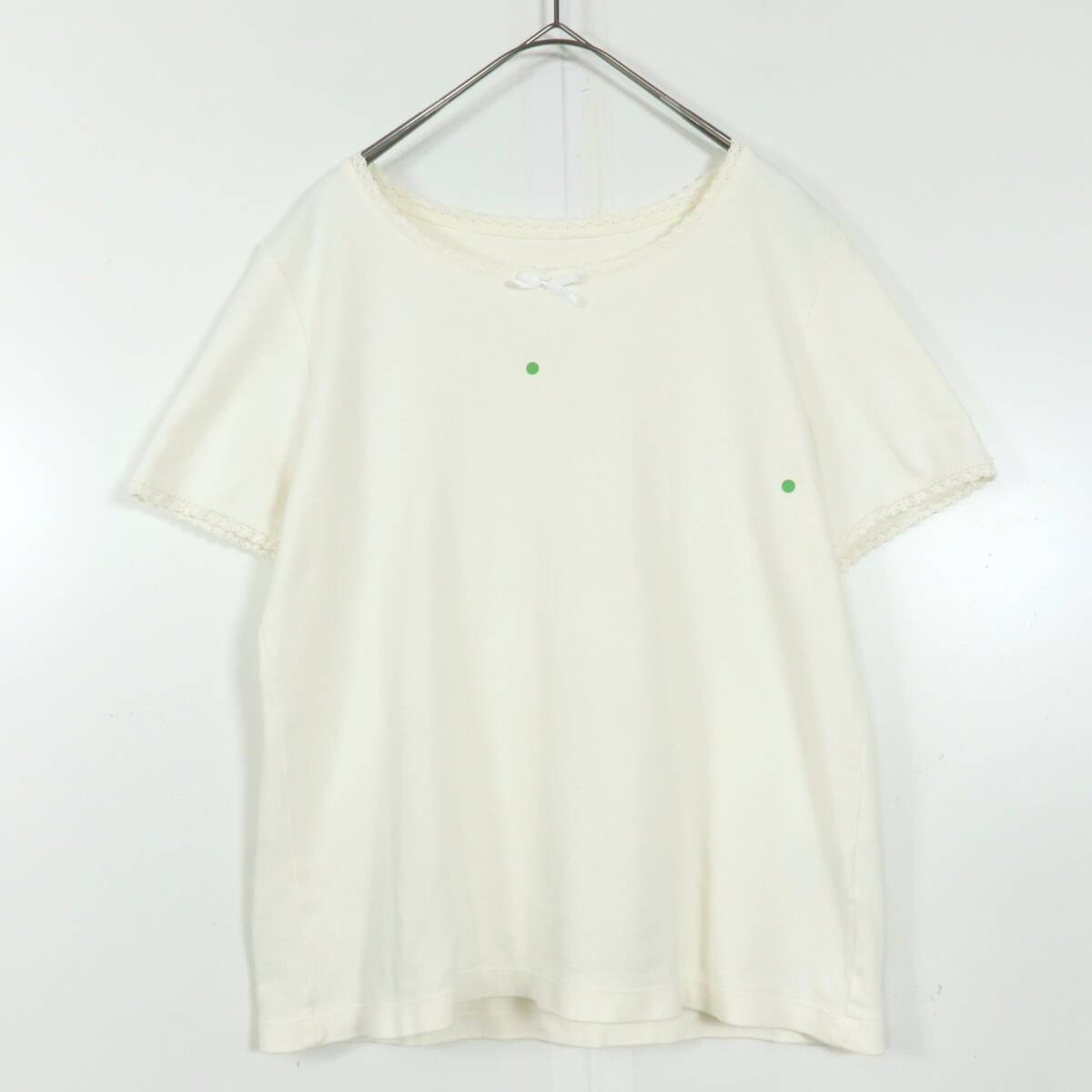 | 商品説明 | 【実寸約】肩幅38 袖丈18 バスト90 着丈51(cm) 【サイズ表記】L 【素材】綿100% 【状態】普通の使用感のあるお品物 全体的に毛羽立ち感あり。 フロントうす汚れ少々あり。 【デザイン】クリーム色系 綿100%の肌触りのよい半袖カットソーです。 無地/ピコレース・サテンリボン |