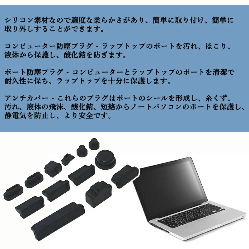シリコン素材なので適度な柔らかさがあり、簡単に取り付け、簡単に取り外しすることができます。コンピューター防塵プラグ - ラップトップのポートを汚れ、ほこり、液体から保護し、酸化錆を防ぎます。ポート防塵プラグ - コンピューターとラップトップのポートを清潔で耐久性に保ち、ラップトップを十分に保護します。アンチカバー - これらのプラグはポートのシールを形成し、糸くず、汚れ、液体の飛沫、酸化錆、短絡からノートパソコンのポートを保護し、静電気を防止し、より安全です。