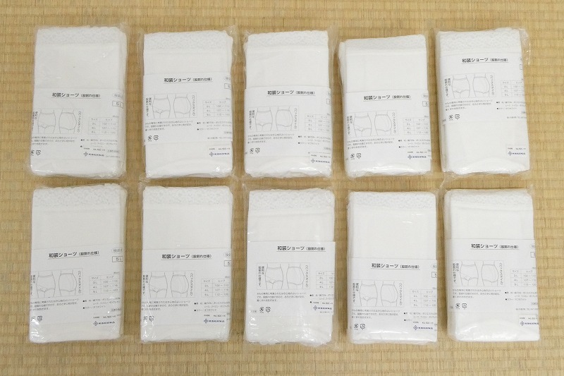 ◆和装小物○10点/和装ショーツ(股割れ使用)/5L/(梱包サイズ:80)◆* コメント・全体的に目立たない程度の薄汚れがあります。 ・一部、外袋が破損している品を含みます。 ・新品ですが、経年保存されていたお品ですので、ご理解のある方のご入札をお願い致します。 ・一袋、3枚入りになります。 ・ * 品質・サイズ -- 着物サイズ目安 -- ・サイズ:5L(ヒップ・約112~120cm) ・オフホワイト ・素材/綿70%・ポリエステル30% レース:ナイロン・ポリウレタン ・※一部商品のみのお取引はお断り致しております。入札前・落札後に一部の商品のみのお取引交渉や発送方法(メール便等利用)の交渉はご遠慮下さい。サイズ・発送詳細を必ずご確認のうえ、ご理解・ご納得のうえでのご入札をお願い致します。 ・梱包サイズ:80サイズ(発送詳細必読) * 程度 当社基準ランク・・・【3~4】