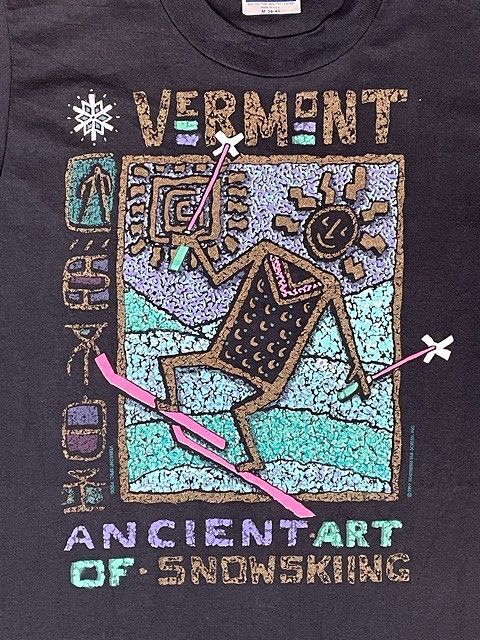| 説明 | 90's HanesボディのTシャツです バーモント州のスキーのプリント ANCIENT ART OF SNOWSKING 1991コピーライト 袖・裾シングル アメリカ製 |