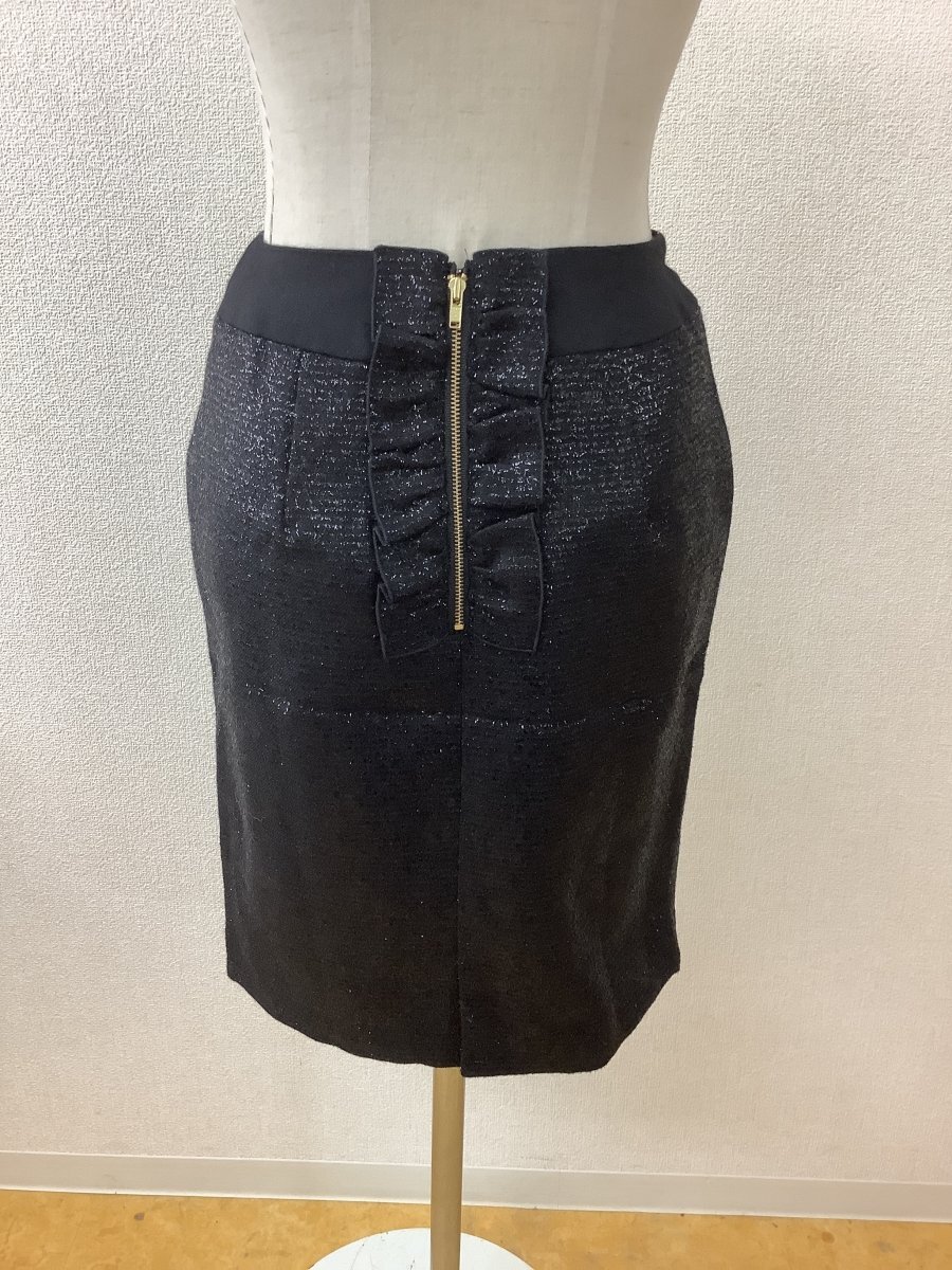 | 管理番号:10^137810 クリアインプレッション CLEAR IMPRESSION 黒にキラキラボーダースカート 後ろフリル 表示サイズ:1 実寸(参考)