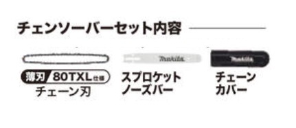 | ガイドバー 形式 | ガイドバー 長さ(mm) | チェーンスピード (m/s)[m/min-1] | チェーン 形式 | |