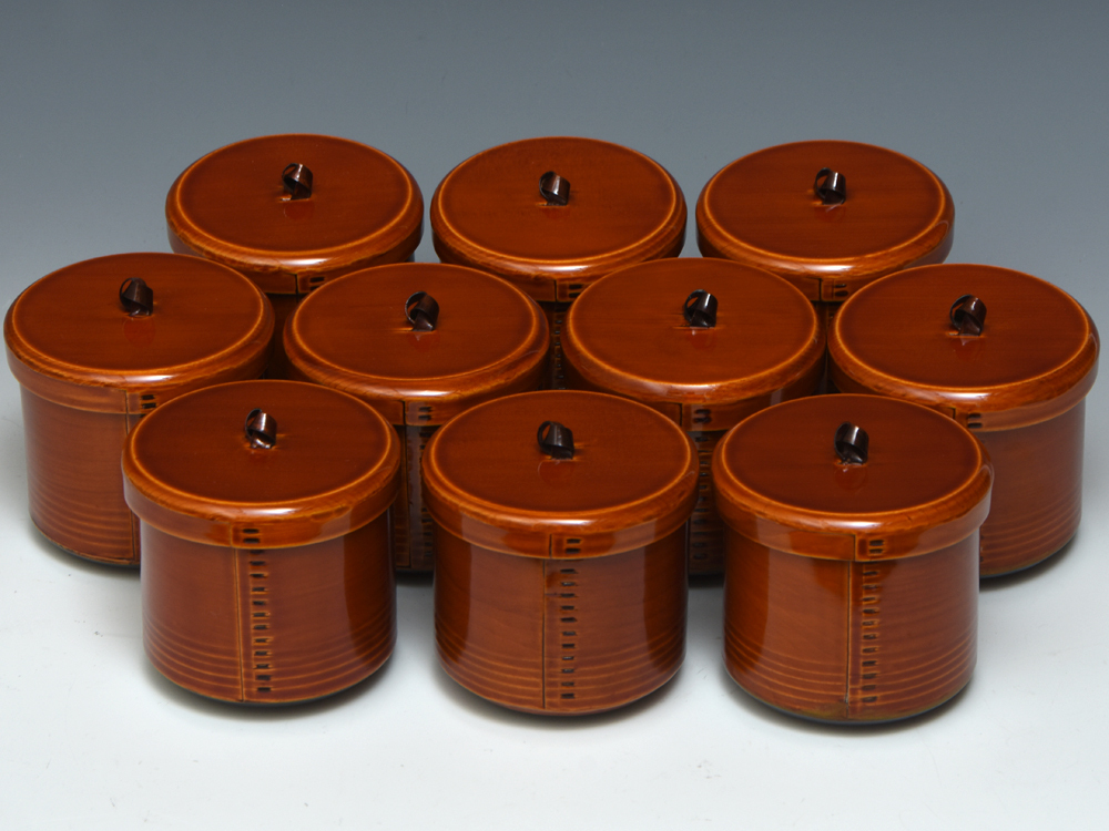 飛騨産 吸物椀10客 官休庵 13代 有隣斎(花押) 春慶塗 懐石道具 茶懐石 茶道具 木製漆器 漆工芸 漆芸 |