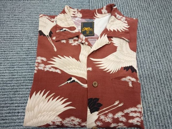 | ★☆Knack アロハシャツ 和柄 鶴 ブラウン サイズ表記無し 状態良 美品☆★ | ||