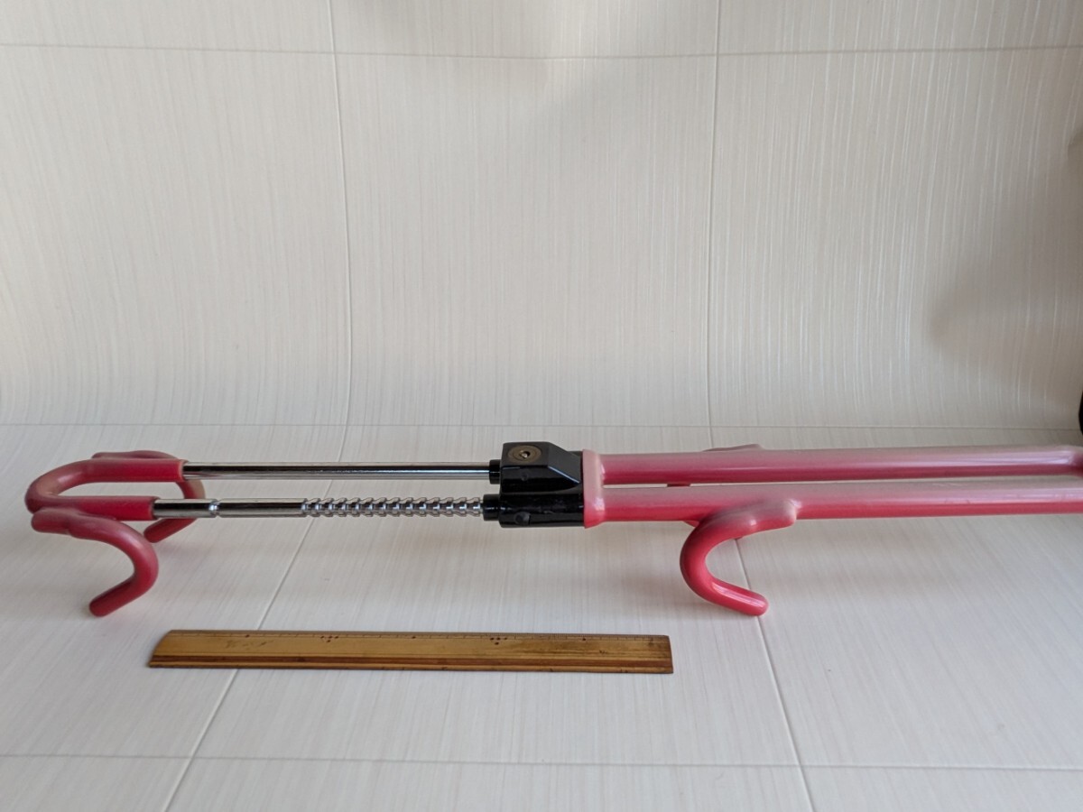 本体の伸縮、鍵をかけると少しでも伸ばした状態からはロックされ縮まないこと、鍵を開錠すれば縮むことを確認しました