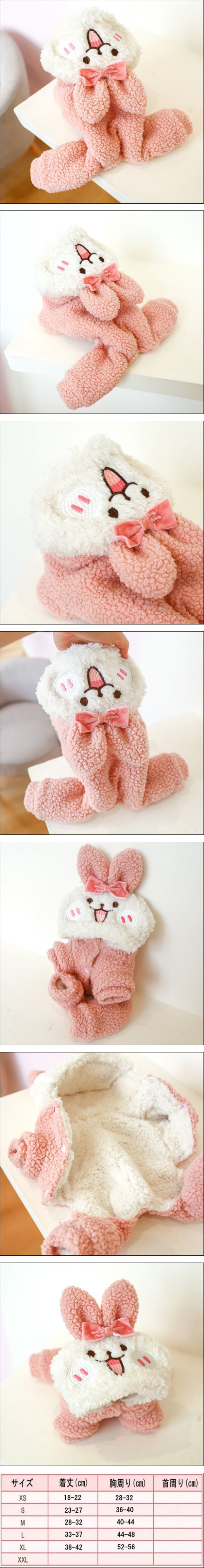 犬の服 つなぎ ロンパース 四足前開き 裏地起毛 ウサギ 着ぐるみ 防寒 暖かい ペット服 ドッグウェア 小型犬 中型犬 お出かけ コスチューム | |||