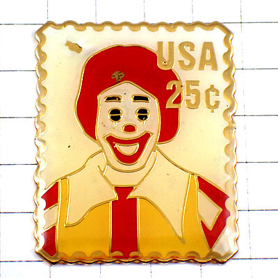 | "ピンバッジ・マクドナルドのドナルドとMアメリカ/USA郵便切手型25セント RONALD MC-DONALDS"の商品説明 | |