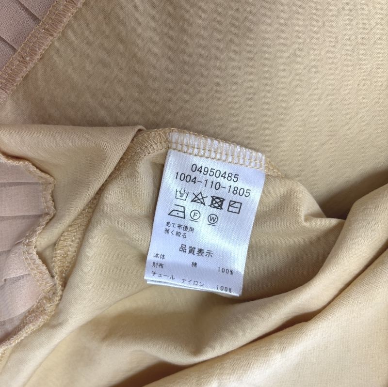 前身ごろにはチュールレース、裾にはプリーツシフォン素材が重ねられており、