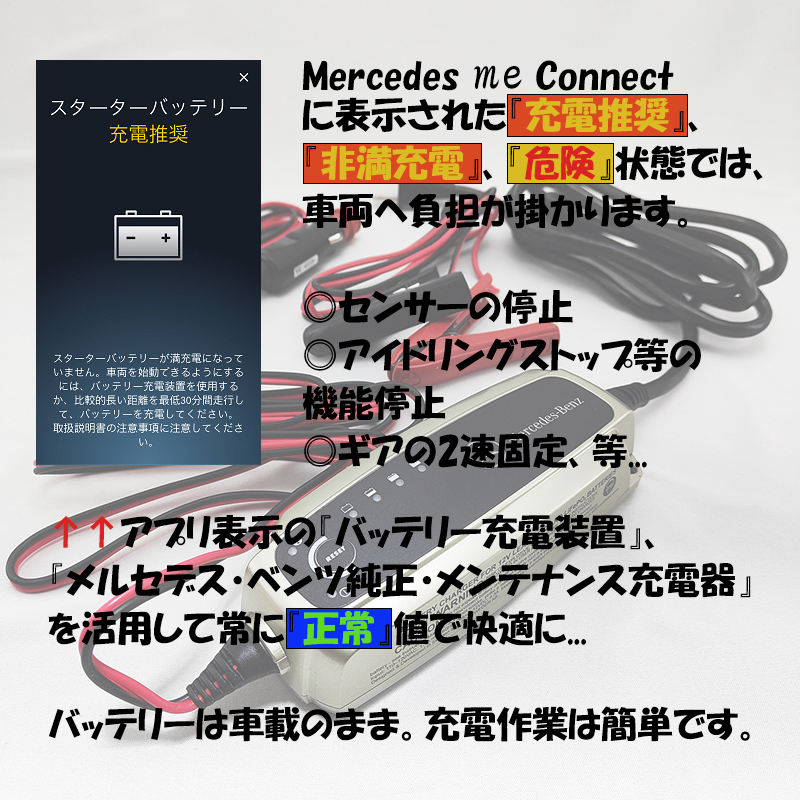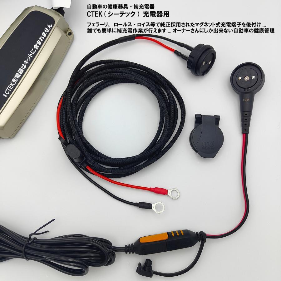 | 補充電が、車両にとって最高のメンテナンスなんですよ!! そんな補充電を誰でも簡単に行えるのが、メルセデス・ベンツ純正・補充電器 これは、補充電器よりもバッテリーのメンテナンス装置として活用していただきたい。 そこで、フェラーリやロールス・ロイス、アストン・マーティン等に標準装備されている充電端子「MagCode」をどんな車両にでも装着できるキット「マグネット式充電端子インストール・キット」をセットしちゃいました。 メルセデス・ベンツ純正充電器の端子をCTEKアクセサリー用の「コンフォート・コネクト端子」に変換するハーネスをおまけにつけます。 「マグネット式充電端子インストール・キット」は、車両へのインストール作業が必要ですが、取り付けてしまえば、マグネット端子をカチッと接続するだけでバッテリーのメンテナンスが可能になります。 高級車を数台所有していてガレージに収まっている時間が長い愛車に接続しておけば次期始動時にはトラブルも少ない... 特に寒冷地でのバッテリー保護には威力を発揮いたします。 CTEK社の充電器は、ポルシェ、アストンマーティン、フェラーリー、メルセデスなど高級車ブランドの殆どにOEM供給している世界トップシェアのバッテリー充電器です |