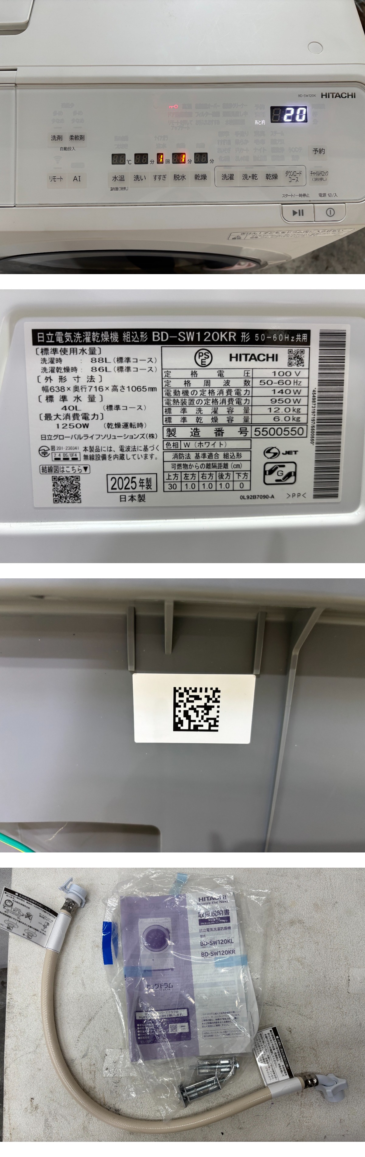 大阪発 日立 ドラム式電気洗濯乾燥機 BD-SW120KR 標準洗濯容量12.0kg 2025年製 IMA | |||||||||||||||||||||||||||||||||||||||||||||||