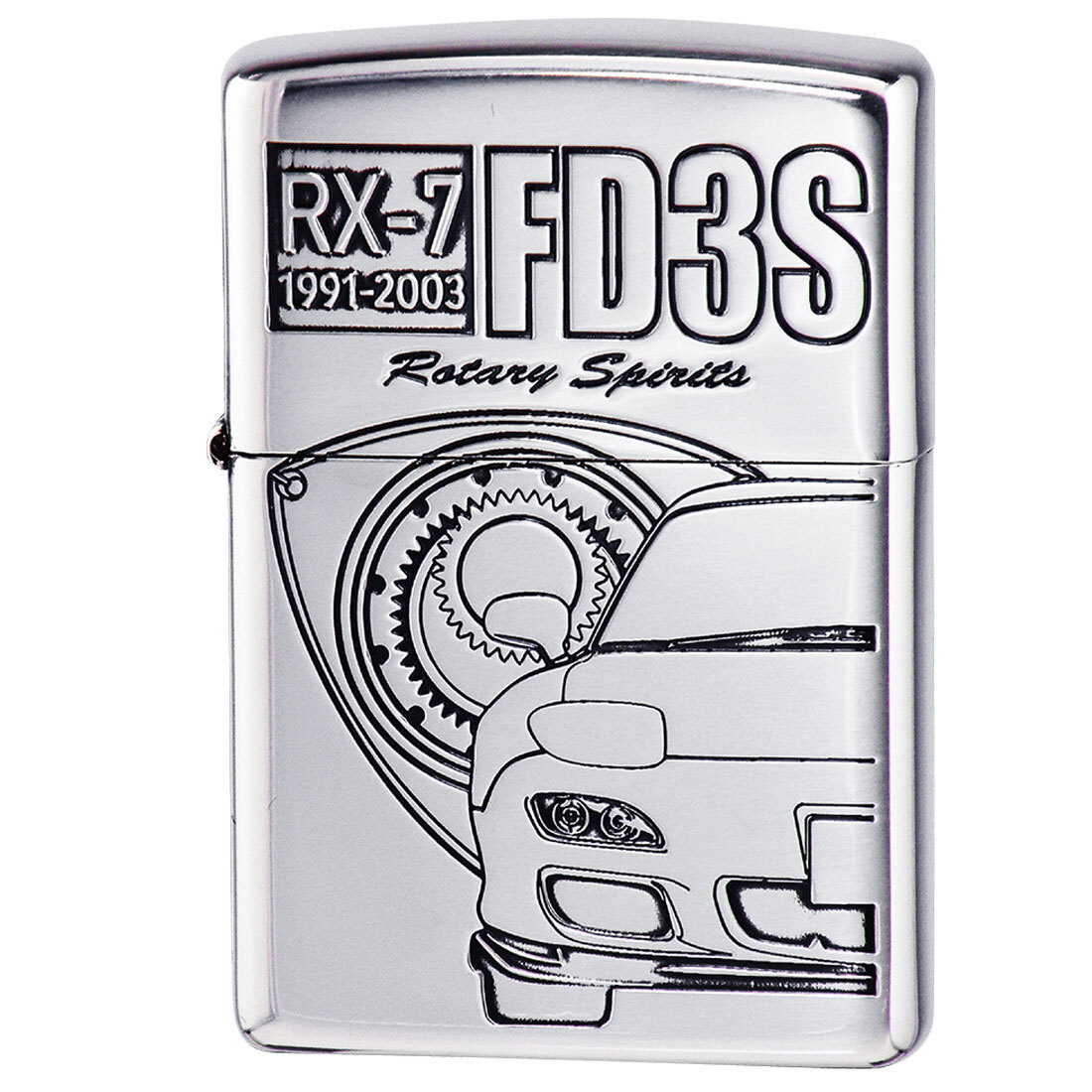 世界で唯一マツダだけが量産に成功したロータリーエンジンを載せたピュアスポーツカー「RX7」FD3S(1991年-2003年)デザインのZIPPOライター。