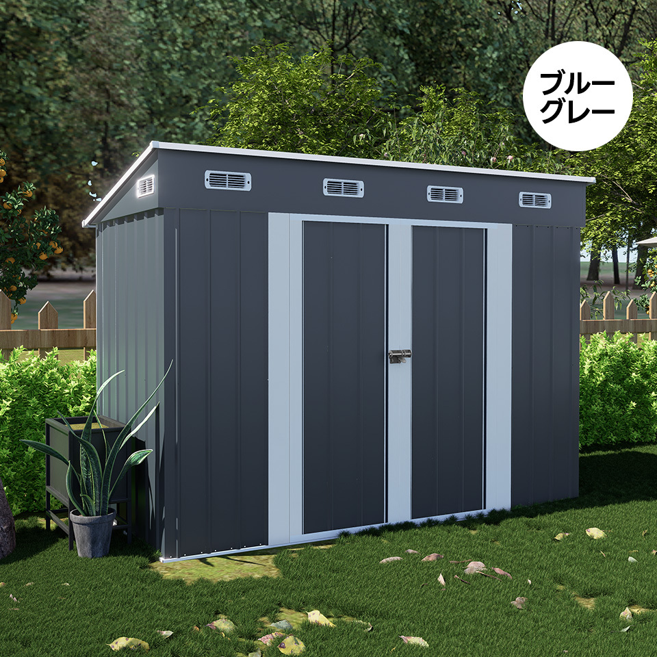 ◆01マルチに活躍! 置き場に困るものはまとめて収納 マルチに活躍する収納庫。家の周りで散乱しがちな荷物をすっきり! ゴミによるのカラスや猫のイタズラ対策にも最適です。 レジャー用品 ガーデンニング用品 掃除道具 資源ゴミ 子供用のプール、釣り具 自転車(自行):自転車や電動自転車の駐輪に適した広々としたエリアを提供。簡単に駐輪でき、必要なスペースを確保できます。 自転車用駐輪エリア:約2.667㎡  ◆02超大型収納スペースで圧倒的な収納力 4827Lの超大型収納スペースを提供し、庭や室内で場所を取る物品をきちんと片付けられます。 大型のガーデンツールや季節物の衣類、大きなスポーツ用品などをすべて一括収納。収納力が圧倒的だから、どんな物でも収めることができます。  ◆03扉の開閉が邪魔にならない!観音扉タイプ 観音扉タイプの扉は最大180度まで開くことができます。扉が全開にできるタイプなので、大きなサイズの倉庫でも内容物が一目で見やすく、取り出しやすくなります。 大きく開けられるため、荷物の出し入れが簡単です!  ◆04施錠・解錠できる便利な機能 ロックピンは、下のボタンを上に押し上げることでロックされ、上のボタンを押すと縮んでロックが解除される仕組みになっています。使いやすく、スムーズに施錠・解錠ができる便利な機能です。  ◆05床材補強フレーム付き! スチール補強フレーム付きで、安全性・耐久性を向上させました! ※床材は付属しておりません。お客様にてご準備をお願いいたします。  ◆064段階調節 棚板が4段階調節を採用しており、1回の調節で28.6cmごとに高さ変更が可能です。 お好みや使用状況に合わせて、高さを調整できるので、スペースを有効に使いながらも自由なレイアウトが可能です。 安心の耐荷重 各棚板約20kg(1枚あたり)  ◆07しっかりとした頑丈な素材 ハイテンション亜鉛メッキ鋼板採用! 有害物質が発生しない環境に配慮した粉体塗装仕上げで、衝撃に強くサビにくい特徴があります。 外部には特別な防水加工が施され、製品全体が防水・防錆効果が優れています。  ◆08衝撃に強く凹凸壁面 壁面には特有の凹凸形状が採用されています。 通常商品の平滑な壁面と比較して、凹凸部分が外部からの衝撃や圧力を分散し、全体的により安定感が増しています。  ◆09排水に役立つ屋根 屋根は本体よりも広く、斜面が設けられています。 雨が降ると、屋根にたまることなく、斜面と凹槽を経由して地面に流れ落ちます。これにより、物置内に雨が侵入する心配がなく、内部の部品をより良く保護します。 ご注意:完全な防水仕様ではありませんので、事前に防水処理を行うことをお勧めします。  ◆10 6つの換気口が付き! 空気を循環させて、室内の温度と湿度を快適に保ちます。  ◆11屋根の耐荷重について 屋根の耐荷重は一般的に1平方メートルあたり30kg程度です。 通常の積雪には耐えられますが、積雪が多い場合は早めに雪かきを行ってください。積雪や台風などの自然災害による損害については、保証できませんのでご了承ください。積雪地域や台風の影響を受けやすい地域では、必要に応じて屋根の補強をお勧めします。 補強キットは当店では取り扱っておりませんので、お近くのホームセンターなどで補強材をご購入ください。  ◆12その他の安心対策 #1.プラスチック屋根カバー 収納庫の屋根を補強できます。  #2.取っ手で施錠可能 ドアの取っ手にはロックをかけるためのスペースが用意されています。南京錠などを簡単に取り付けることができ、中のアイテムを安全に保管することができます。 ※南京錠は付属しておりませんので、ご自身でご用意ください。  #3.手袋付き 作業用の手袋をご用意しております。