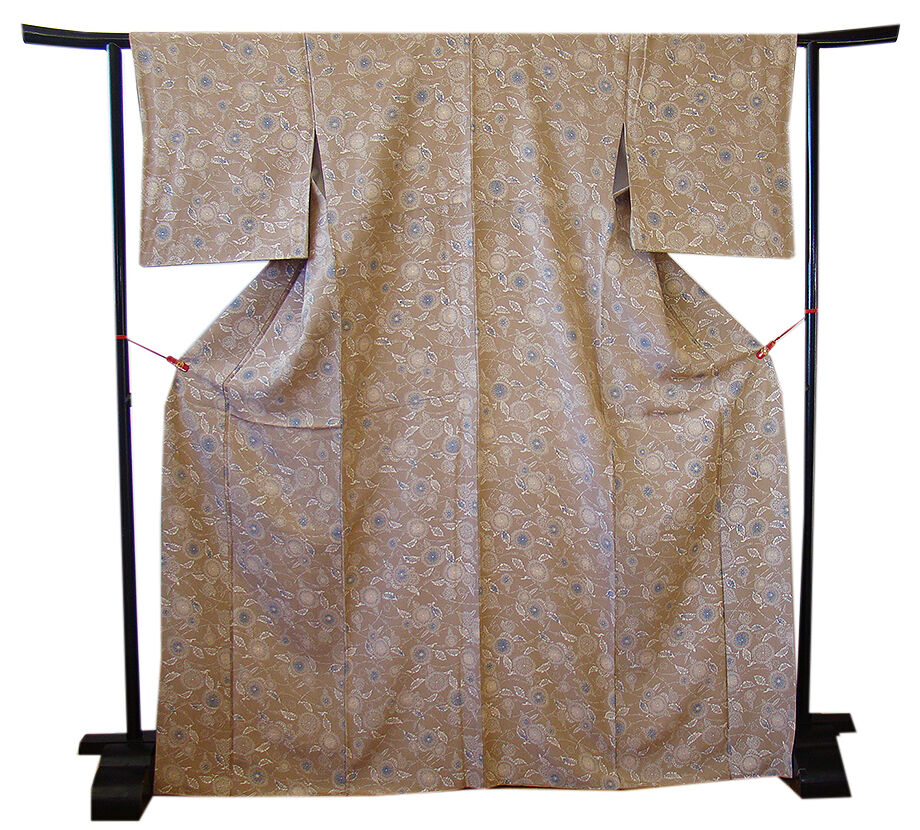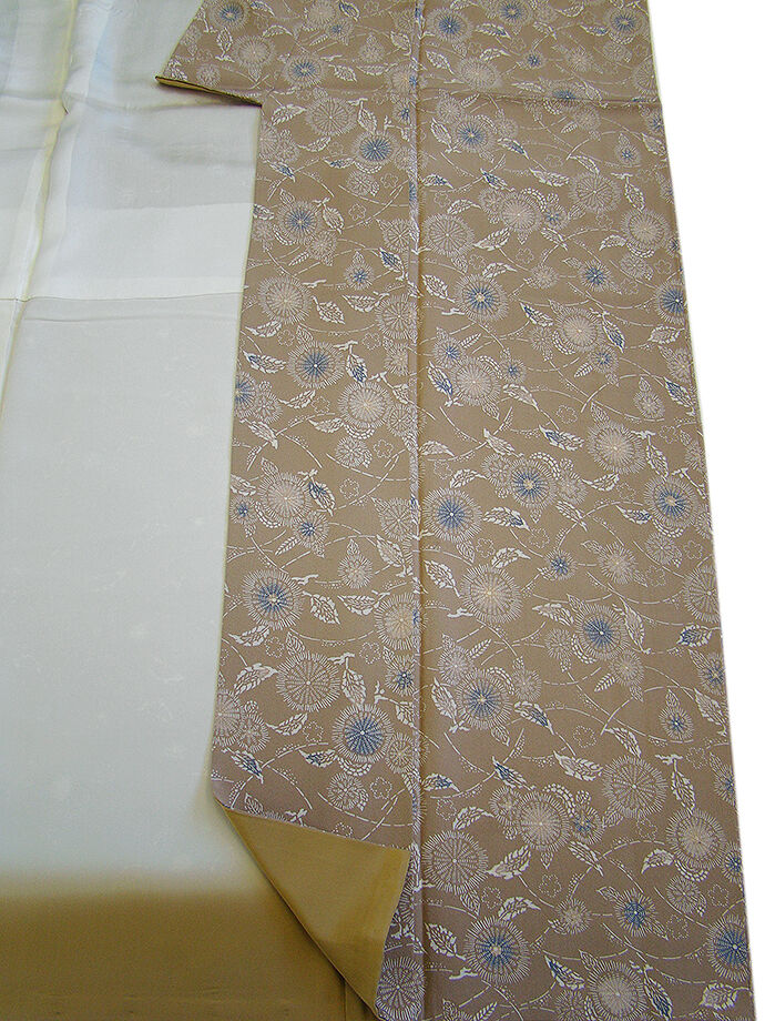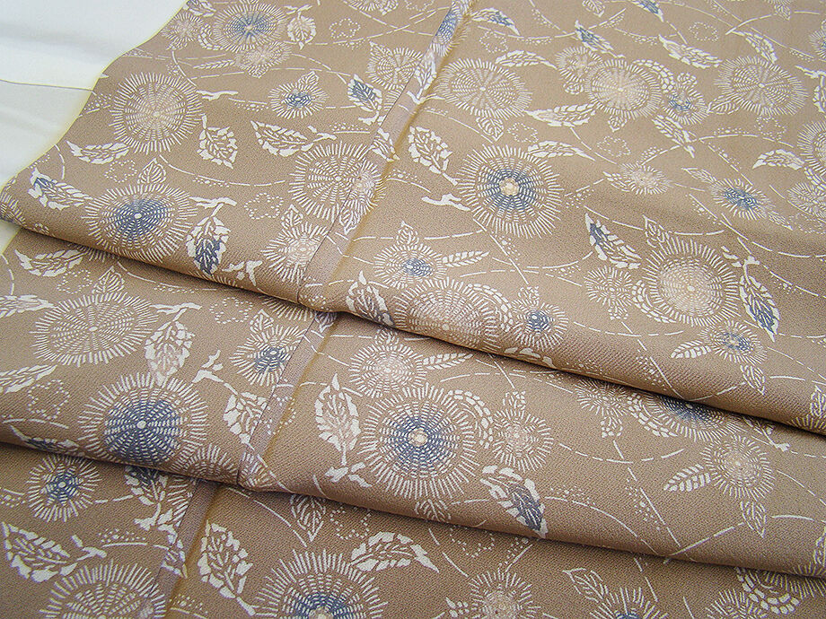 | 商品説明 | こちらのお品は「袷」ですので10月から5月までお召頂ければと思います。 とてもしなやかな手触りの着心地良い重めの滑らかな極上ちりめん地の生地、 薄いシナモン色地に花草柄の染柄、 八掛は飴色(正絹)、幅広い年代の方にお召頂けます。 |