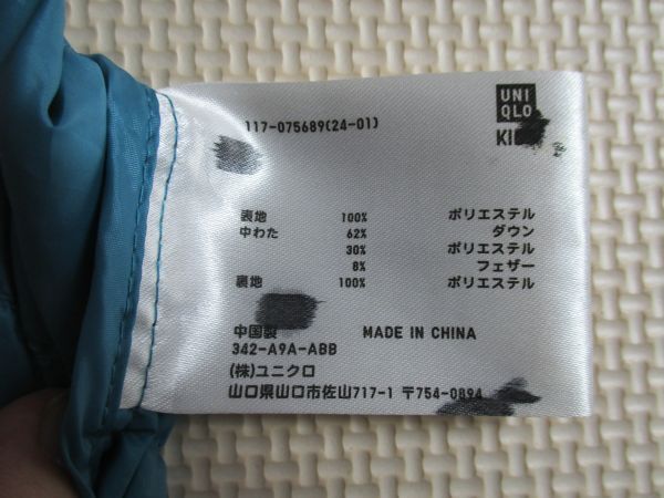 | BG791【UNIQLO・ユニクロ】ダウン 62% ドット模様 ライトダウン ジャケット 女児 黒 120 | ||