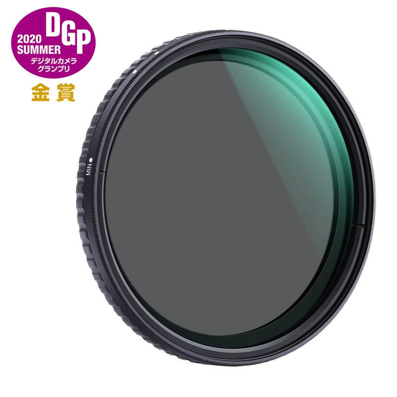 減光量を調整できる可変式 バリアブル(可変式)NDフィルターは、フィルターの前枠を回転させ、自在に減光量を調整できる画期的なアイテムです。光量は、ND2からND32まで調整でき、撮影によってフィルターを取り替える手間が解消されます。また、可変フィルター特有の高濃度付近でXムラが出る現象を最小限に抑えました。 NDフィルターならではの幻想的な表現が楽しめる レンズの解像度を保ったまま、任意のシャッタースピードで長時間露光撮影が可能。色彩に影響を与えず光量だけを減少させるので、滝や渓流の流動的な描写や車の光を捉える光跡夜景、日中の街角で人混みを消すなど、幻想的で多様な表現が可能です。 高品質光学ガラスとMRCコーティング 色再現性に優れる高品質光学ガラスを使用。金属製の枠はケラレにくい薄枠設計。しっかりと装着でき密閉性に優れています。MRC(マルチ・レジスタント・コーティング)を両面に施し、紫外線吸収・レンズ保護機能・撥水/防汚・耐久性に優れたフィルターです。 (左:フィルターなし / 右:フィルター装着) 光量を自在に変えることで多様な表現が可能 可変フィルター特有の高濃度付近で現れやすいX状ムラを制御 耐久性に優れ、撥水・撥油・防汚機能を備えています 仕様