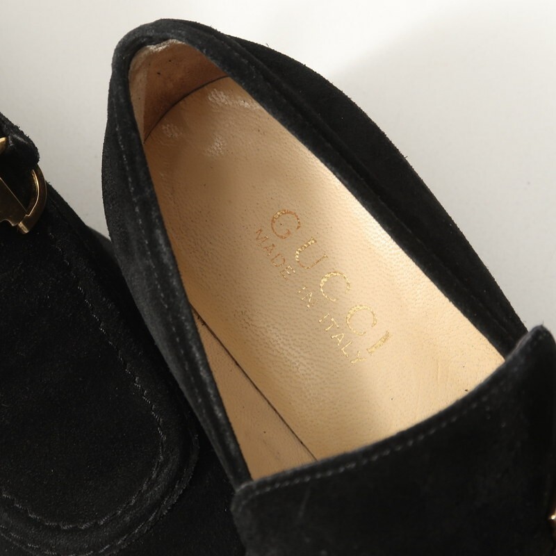 | MI0035△イタリア製 GUCCI グッチ スエードレザー ホースビットローファー スリッポン 靴 チャンキーヒール ブラック系 35C/22.0cm相当 | |||