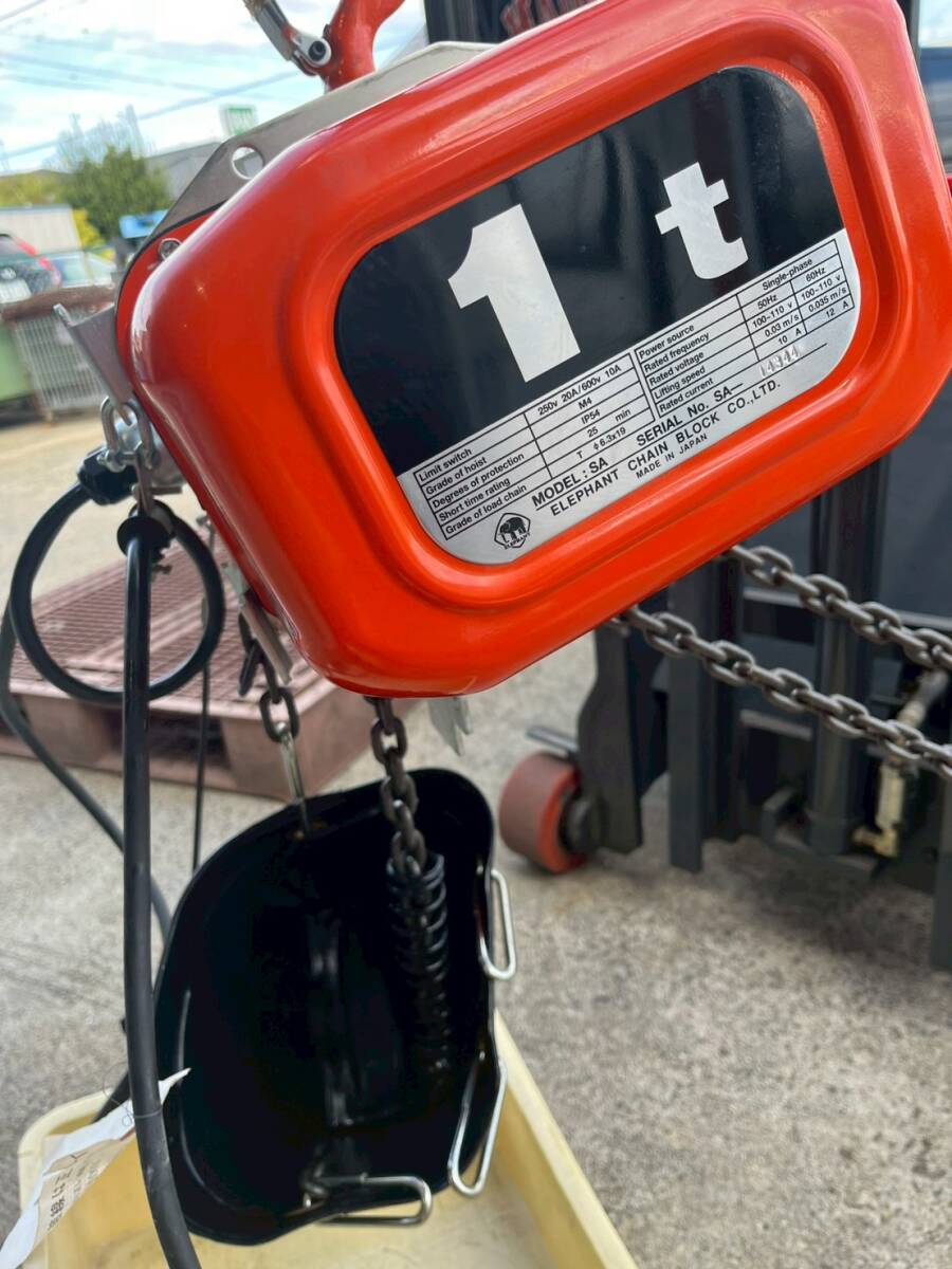 | 商品説明 | フック型式電気チェーンブロック 取扱説明書付き(中古品 ・現状有姿) メーカー:象印チェーンブロック ELEPHANT 型式:SA型 1トン 揚程8m チェーン全長:約8000mm 単相100V 電源コード/押しボタンコード:全長約5100mm 重量:約53kg(HP参照) ※使用頻度が低かったため比較的美品(チェーンに油あり) ※空運転での動作確認済 ※付属品は画像のもので全てです。 ※下記にお取引に関する内容を細かく記載しております ※最後までご一読いただき、ご落札くださいませ |