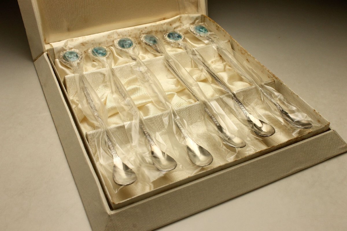 【余韻】 美術七宝 銀メッキ 長柄 スプーン 6本セット★化粧箱<同梱可>